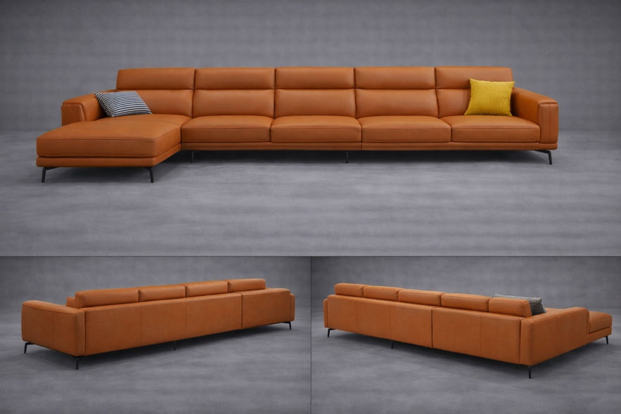 A spacious lounging solution designed for relaxed, everyday living. Its seamless form creates a cohesive and welcoming layout. Made-to-order in your choice of scale, fabric, or leather