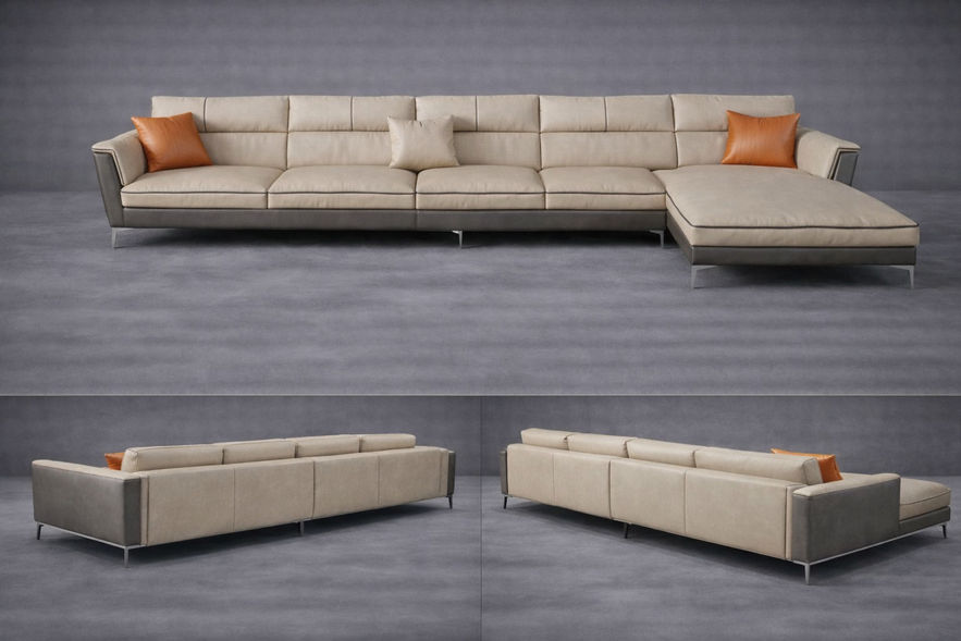 This contemporary sectional combines structured seating with a refined profile. Crafted for comfort without compromising on design clarity. Personalization options include size adjustments and diverse material selections.